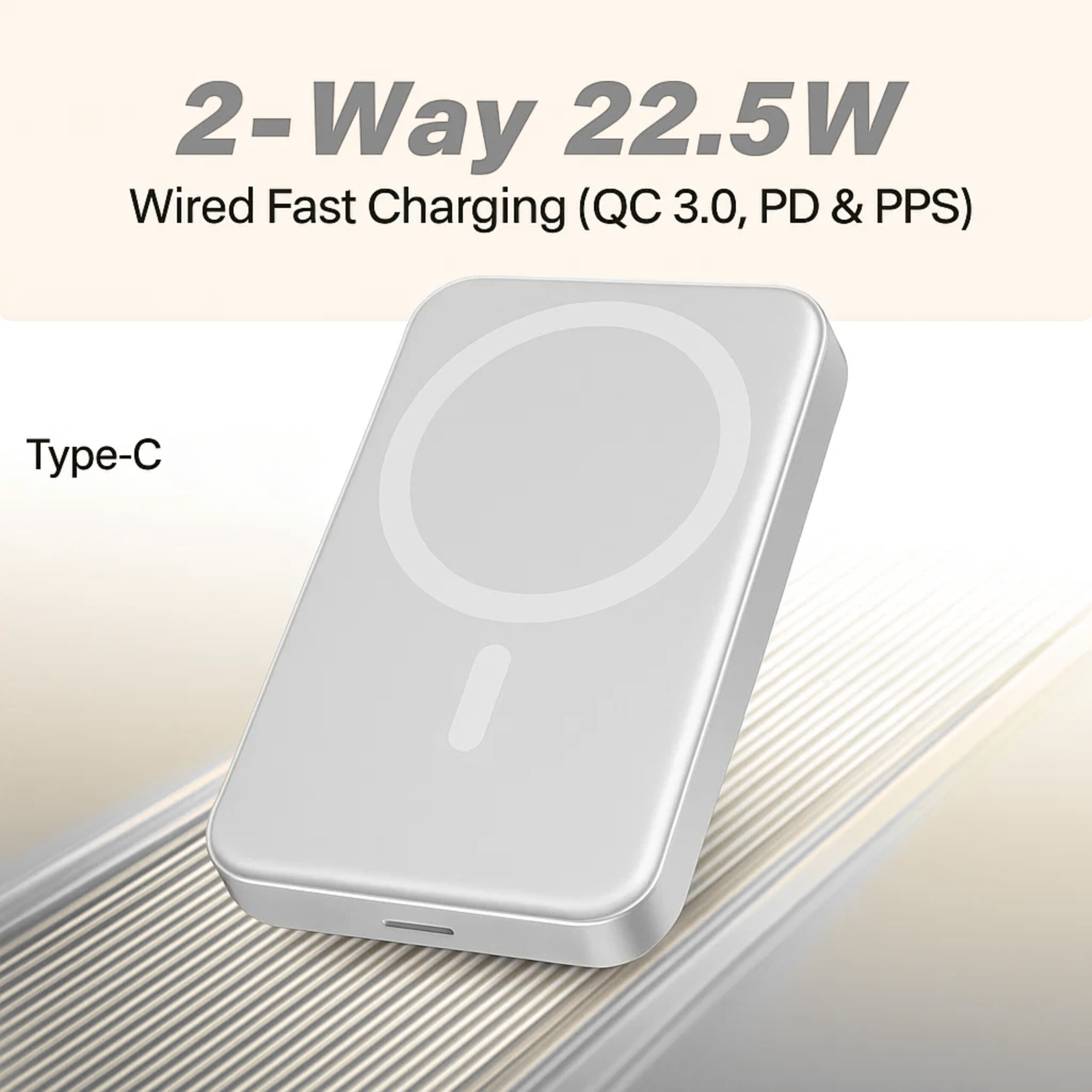 The 20W Power Delivery (PD) output is optimized for fast charging of iPhones, Android devices, and other Type-C compatible gadgets. It also features a wired charging port, giving you the flexibility to charge two devices simultaneously — one via wireless and one via cable.