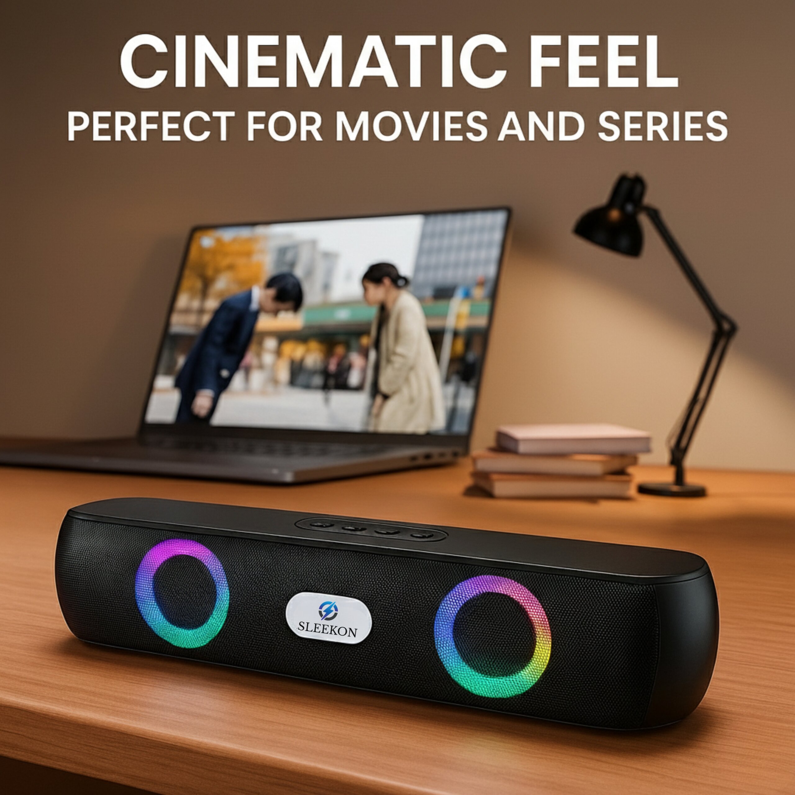 The Sleekon SKN 322 brings your music to life with powerful sound and eye-catching design. With curved edges, vibrant RGB ring lights, and stereo output, it makes a bold impression at home or on the go.